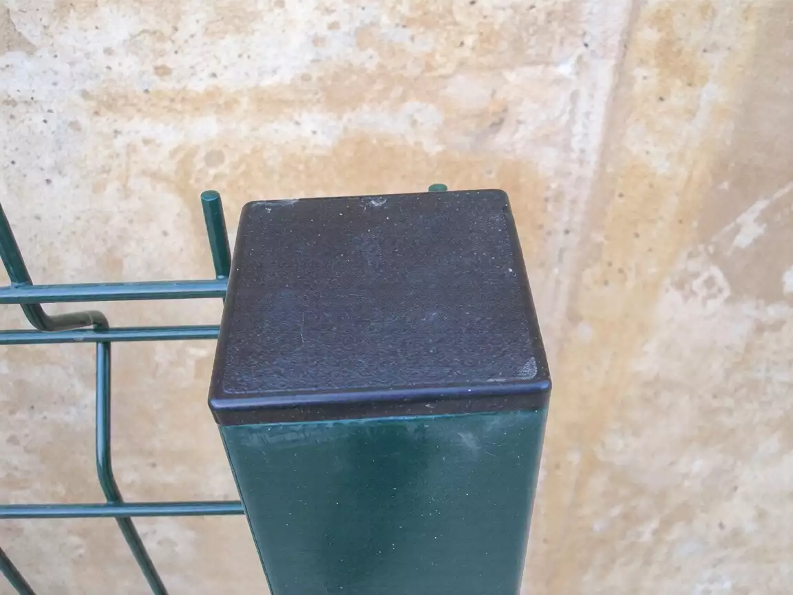Postes metálicos redondos galvanizados y verdes con accesorios para vallas cremallera